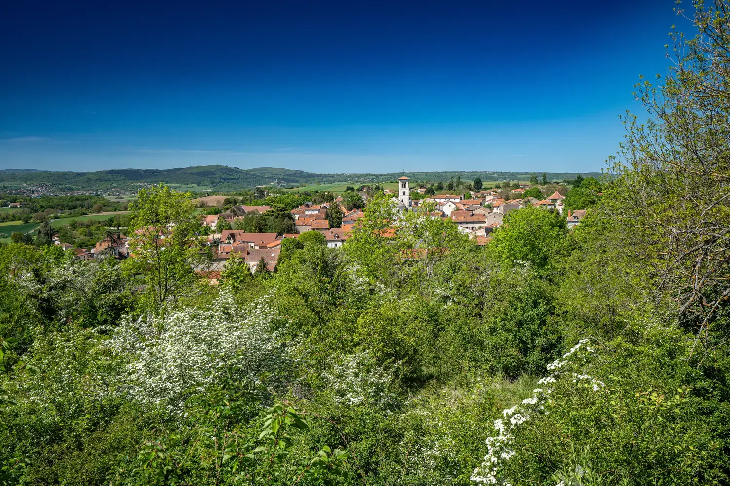 Le village est construit à flanc de coteau, lui offrant des vues dégagées sur les environs et une exposition idéale qui a favorisé la culture de la vigne par le passé.